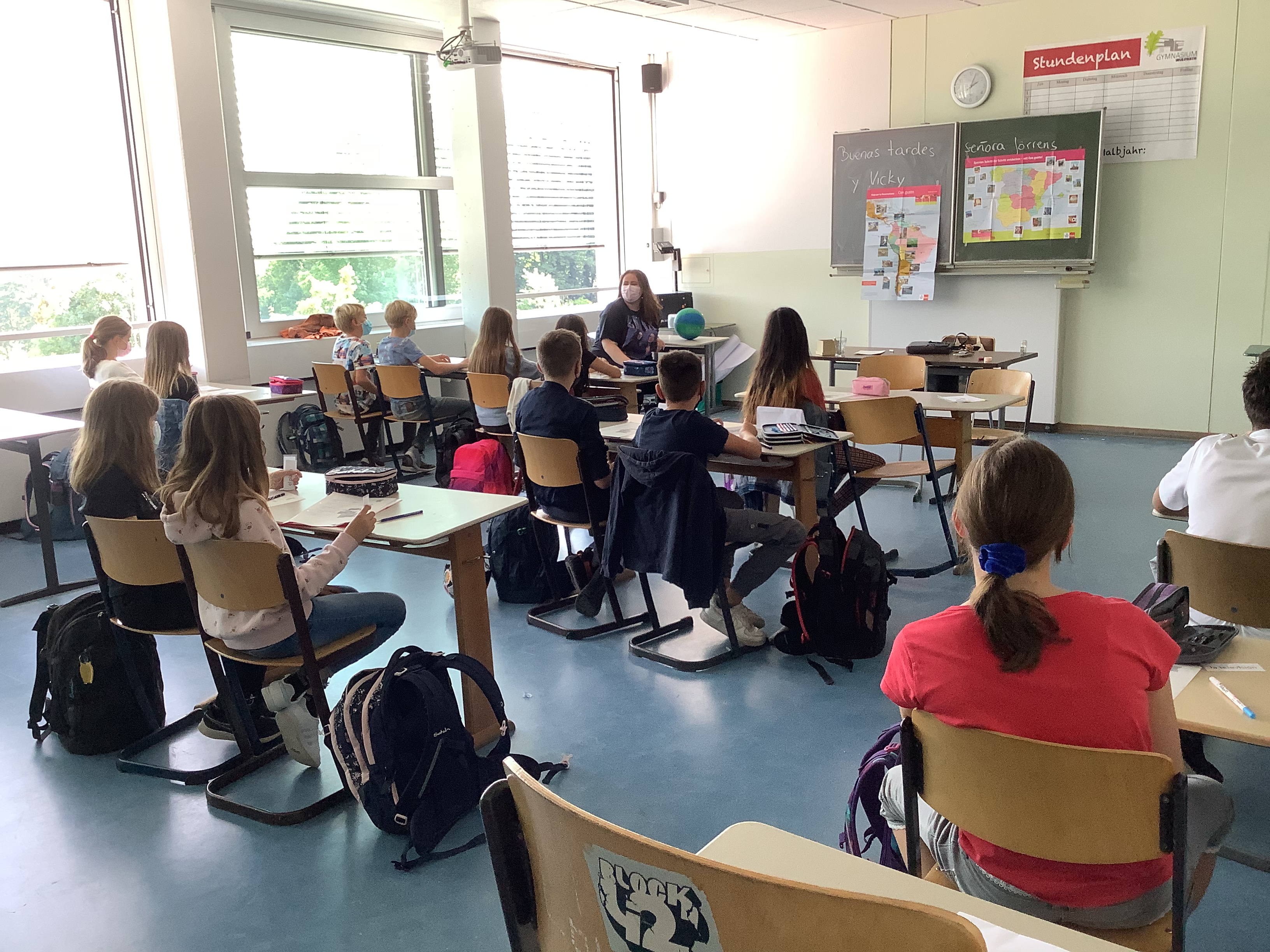Am 3. September hat die Spanisch AG mit hochmotivierten 20 Fünfklässler*innen unter der Leitung von Frau Jörrens und mit Unterstützung der Q1-Schülerin Viktoria Rick begonnen. Viele Schülerinnen und Schüler waren überrascht, wo überall Spanisch gesprochen wird und sind mit Begeisterung dabei. Wir freuen uns, ihnen in diesem Schuljahr Einblick in die faszinierende Welt und Kultur der Hispanos zu verschaffen.