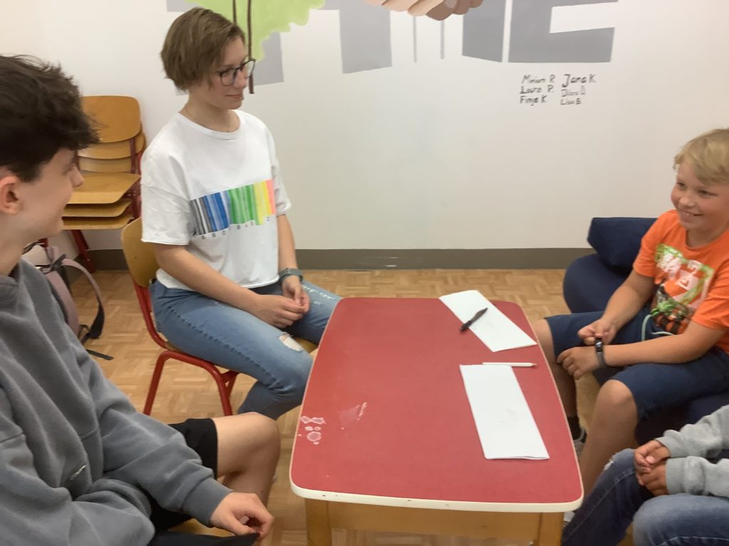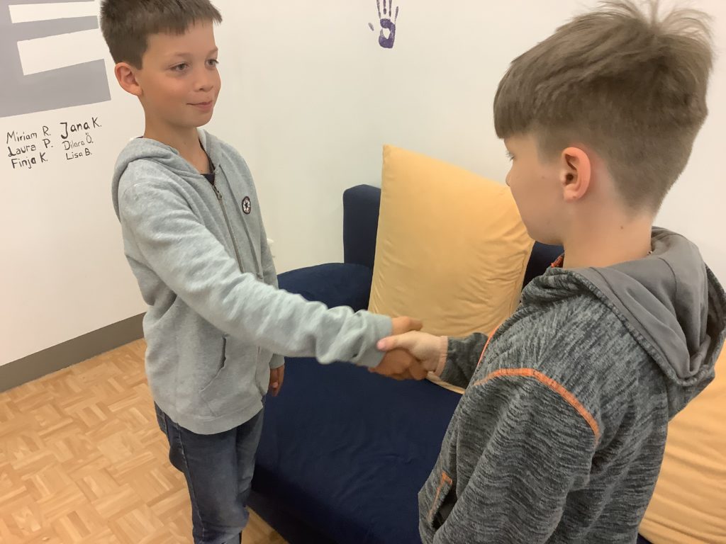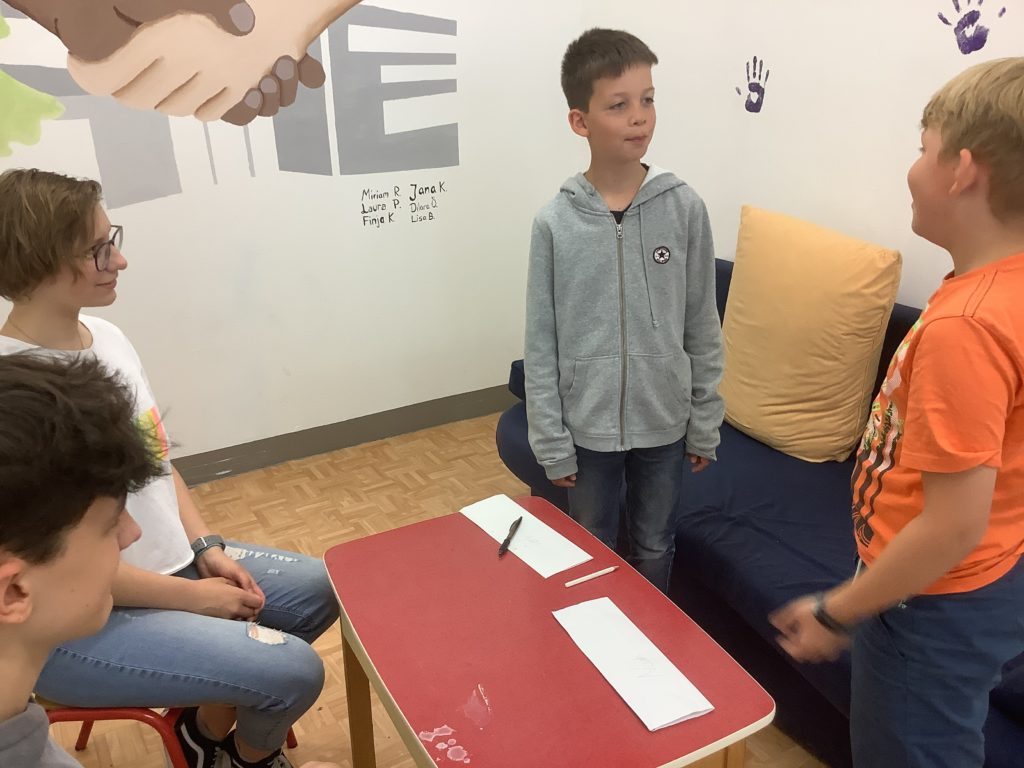 Wie geht es los, wenn ihr zu uns kommt? Zuerst begrüßen wir uns, wir kennen uns schließlich noch nicht. Bevor ihr anfangt zu erzählen, was passiert ist, erklären wir euch die Ziele und das Vorgehen sowie die Regeln für eine erfolgreiche Streitschlichtung. Denn wenn ihr euch gegenseitig und uns nicht zuhört, erfahrt ihr gar nicht, wie euer Streitpartner den Konflikt empfunden hat.