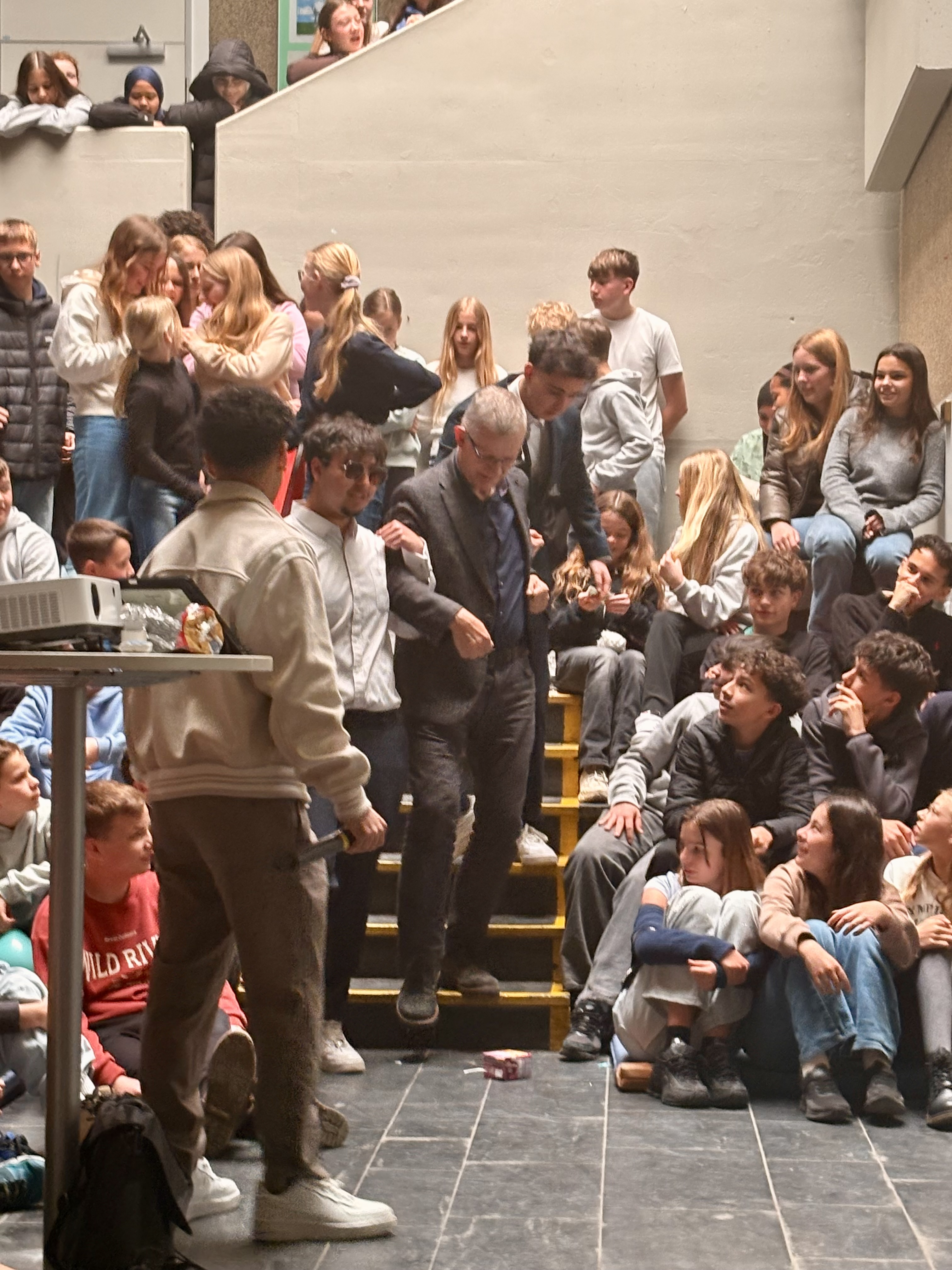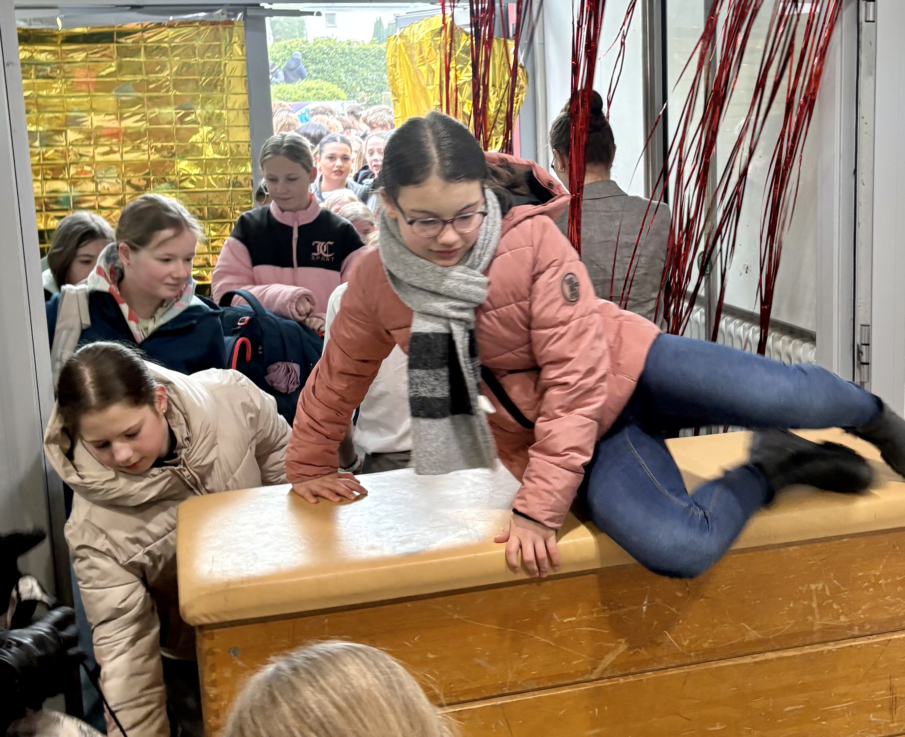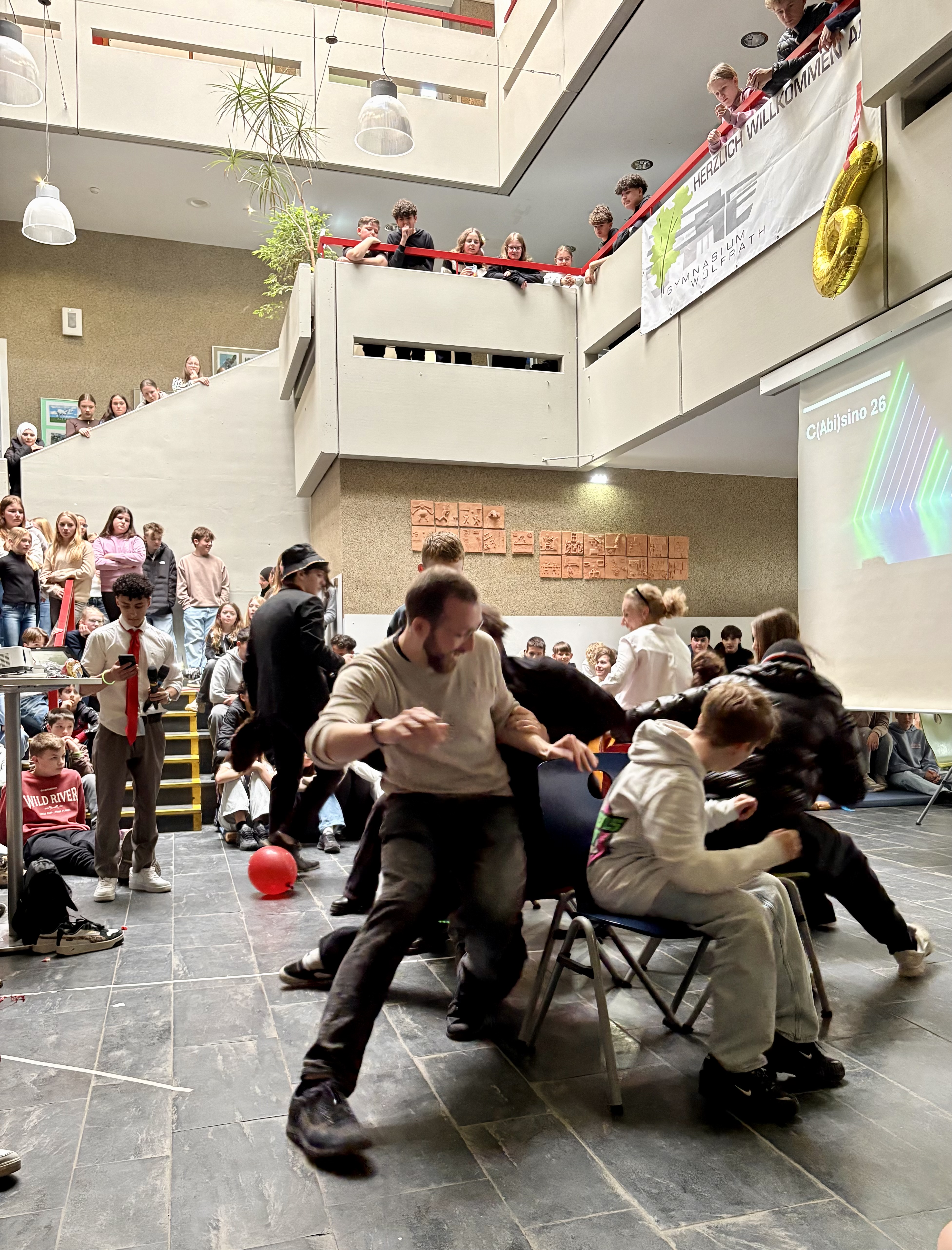 Mit einer Taschenkontrolle vor Schulbeginn, einem Hindernisparcours, lauter Musik und den obligatorischen Schüler gegen Lehrerspiele haben Sie ausgelassen und glücklich ihren Abschied gefeiert. Auch der Schulleiter wurde kurzfristig von der Stufe festgenommen, zum Glück konnte er befreit werden.