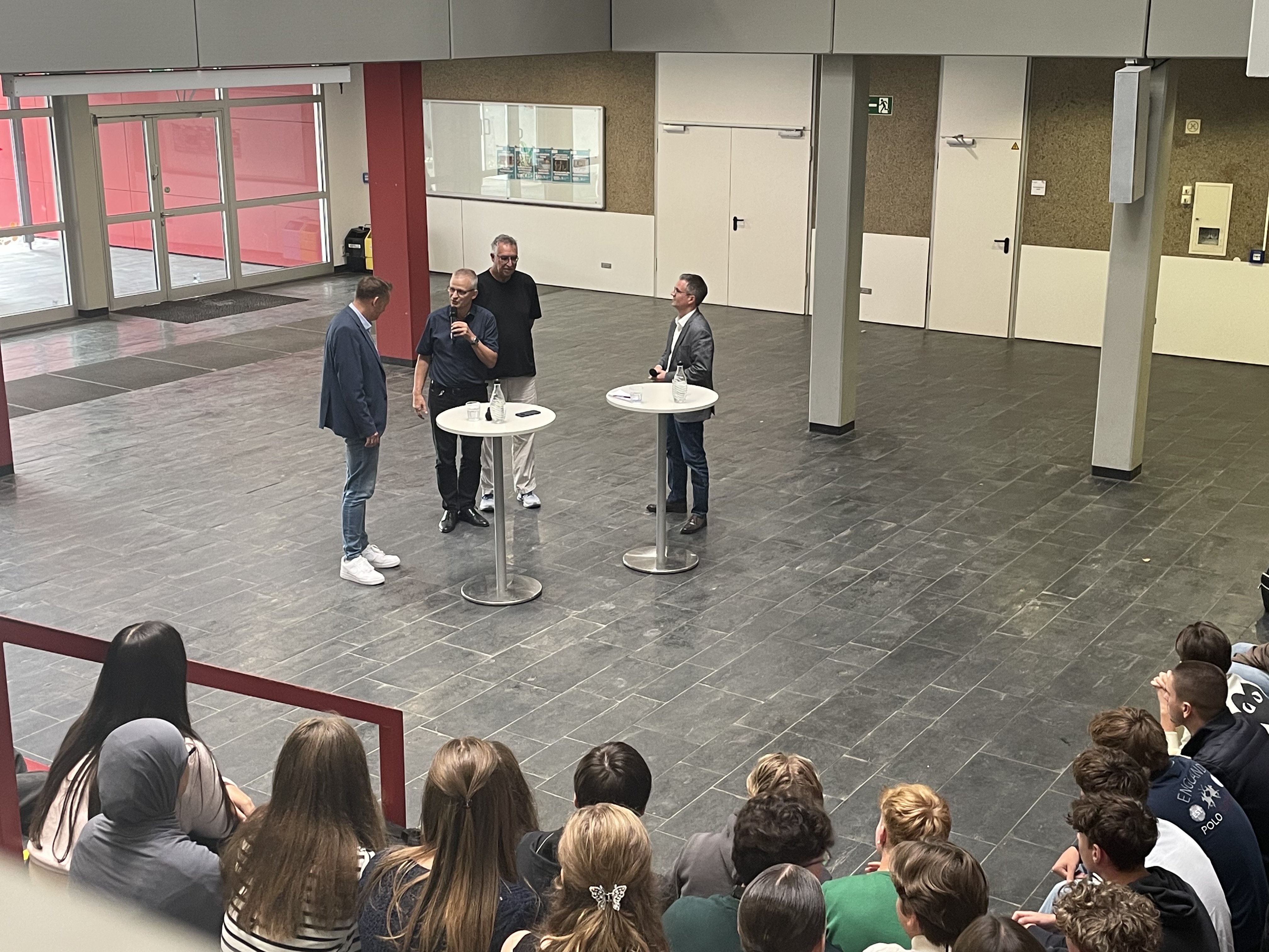 Dank der professionellen und gleichzeitig lockeren Moderation von Thomas Reuter entwickelte sich ein lebendiges Gespräch, das nicht nur informativ, sondern auch unterhaltsam war. Am Ende stand der Eindruck einer gelungenen Veranstaltung, die hoffentlich dazu beiträgt, dass unsere Schüler:innen bei der anstehenden Kommunalwahl eine fundierte Entscheidung treffen können.