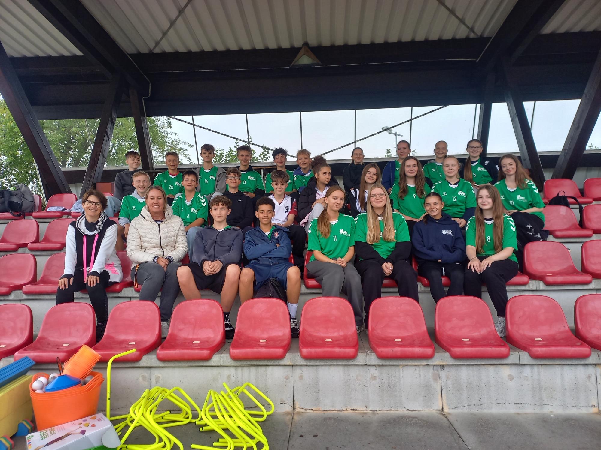 Dabei hat die Klasse 9b die Kindergruppen in Teams betreut, sie von Station zu Station begleitet, die Aufgaben erklärt und sie kräftig angefeuert. Mit Urkunden und Medaillen für jedes Kind wurden die kleinen Sportler:innen von ihren Betreuer:innenteams schließlich mit großem Applaus bei der Siegerehrung belohnt.