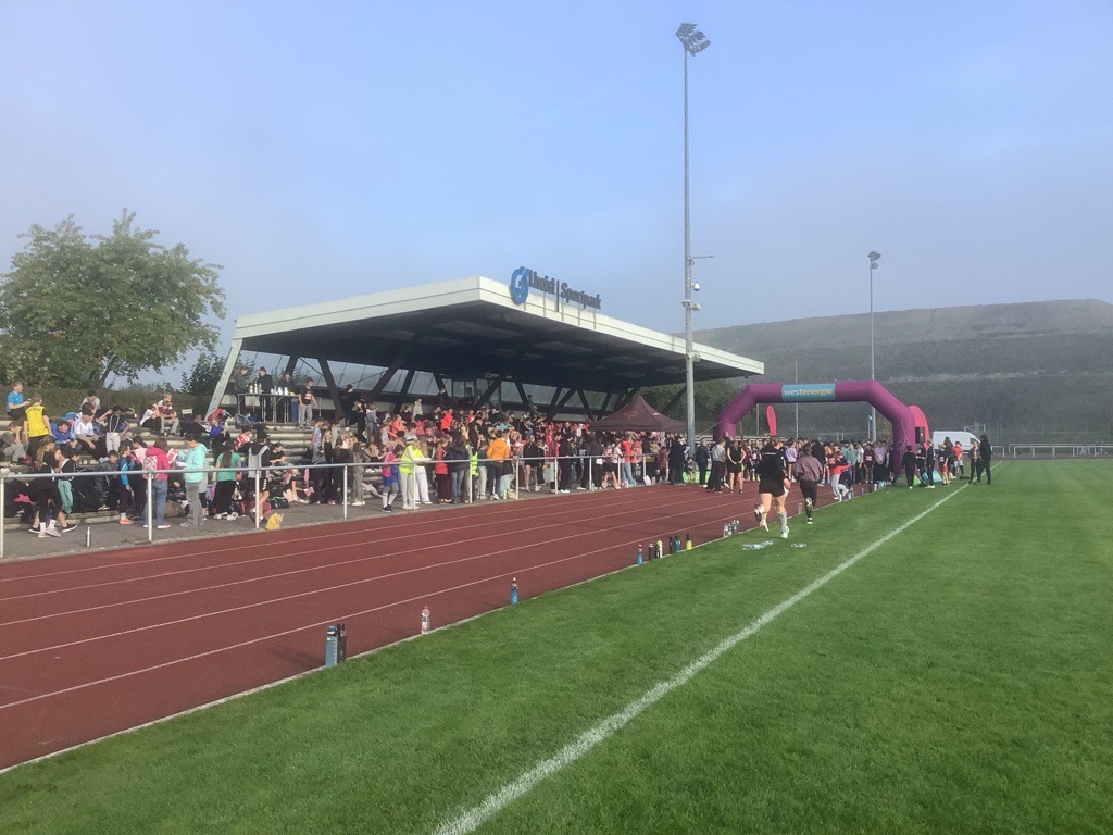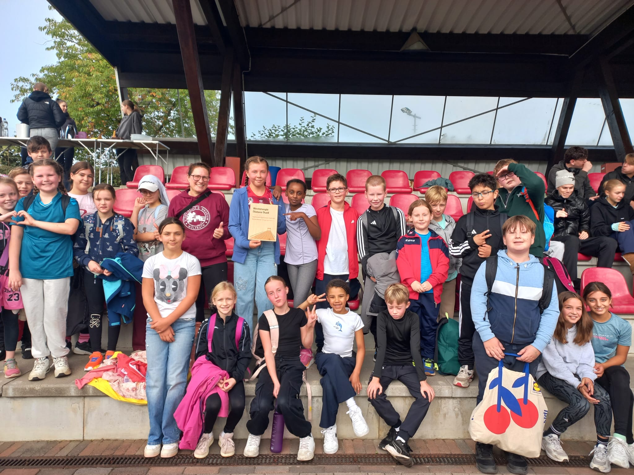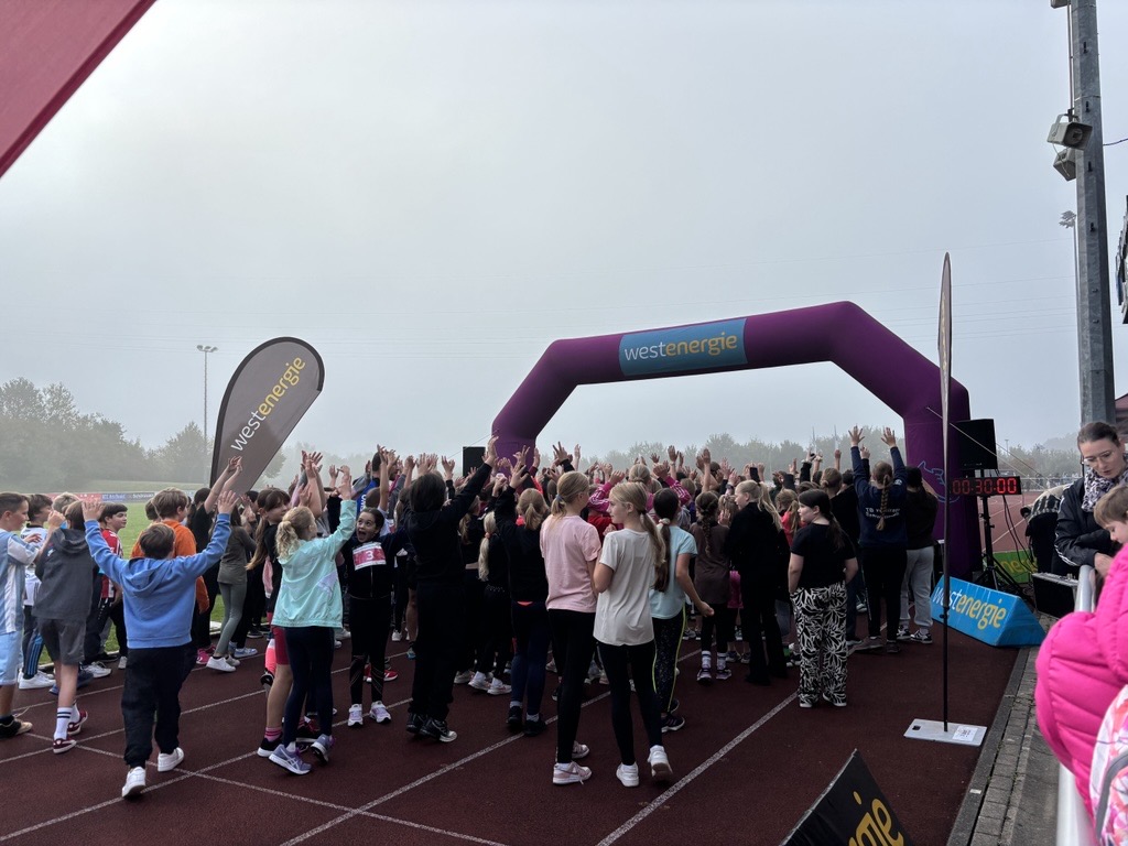 Am 30. September 2025 fand auf dem Sportgelände des Lhoist Sportparks zum nunmehr dritten Mal das diesjährige Westenergie-Distanzduell statt – und das Wetter in Wülfrath zeigte sich von seiner besten Seite: herbstlich kühl, aber sonnig. Schülerinnen und Schüler von der Klasse 5 bis zur Q2 stellten sich gemeinsam mit ihren Lehrkräften der sportlichen Herausforderung: 30 Minuten Laufen, begleitet von Live-DJ, Moderation und digitale Zeiterfassung.