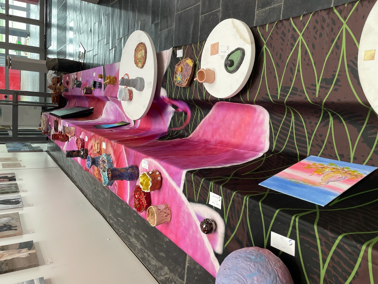Am Samstag hat das Gymnasium wieder seine Türen geöffnet, um die Werke der jungen Nachwuchskünstler*innen des Samstagsateliers zu zeigen. Bei der feierlichen Vernissage gab es Gesang vom Chor des Gymnasiums und Eponine Semmler, eine kleine Preisverleihung für herausragende Arbeiten und einen Verkaufsstand mit Arbeiten aus dem Atelier.