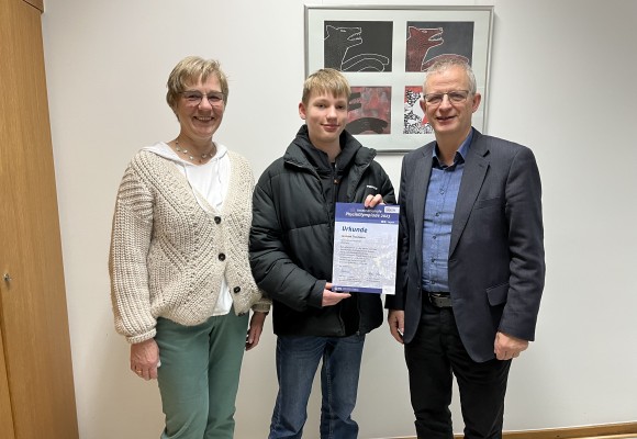 Lennart Trautwein qualifiziert sich für die 2. Runde der Physik-Olympiade 22. Februar 2023 Physik MINT Home Aktuelles Lennart Trautwein qualifiziert sich für die 2. Runde der Physik-Olympiade Weitere Artikel 27. Februar 2025 Mathematik Olympiade Mehr erfahren 27. März 2025 Eine Mission im Auftrag des Artenschutzes Mehr erfahren