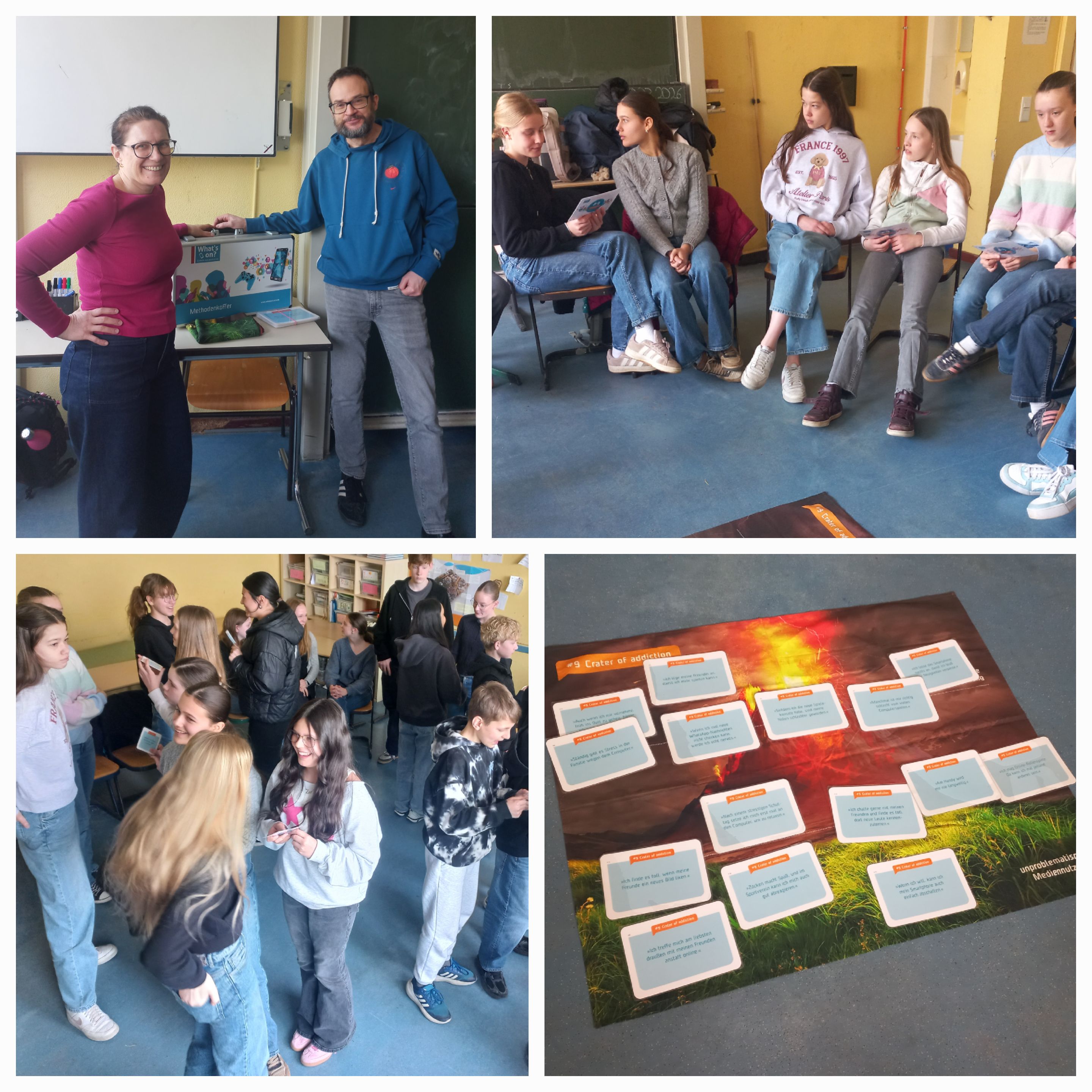 Die Unterrichtseinheiten dieser Woche sind Teil des fest verankerten Curriculums zur Suchtprävention, das alle Schülerinnen und Schüler im Laufe ihrer Schulzeit durchlaufen. Dazu gehören u. a. Projekttage zu den Themen: Rauchen & Vapes, Alkohol, Cannabis, Essstörungen und Mediensucht. Unterstützt wird das Team auch noch von Nina Hoppe.
