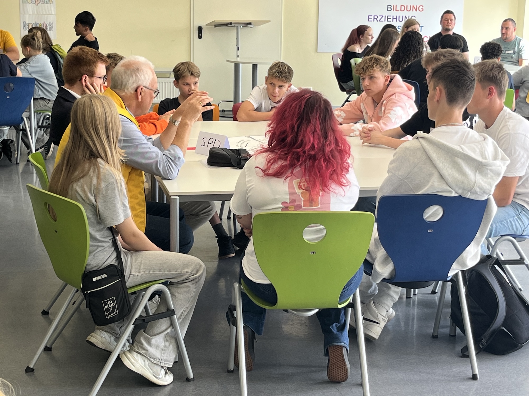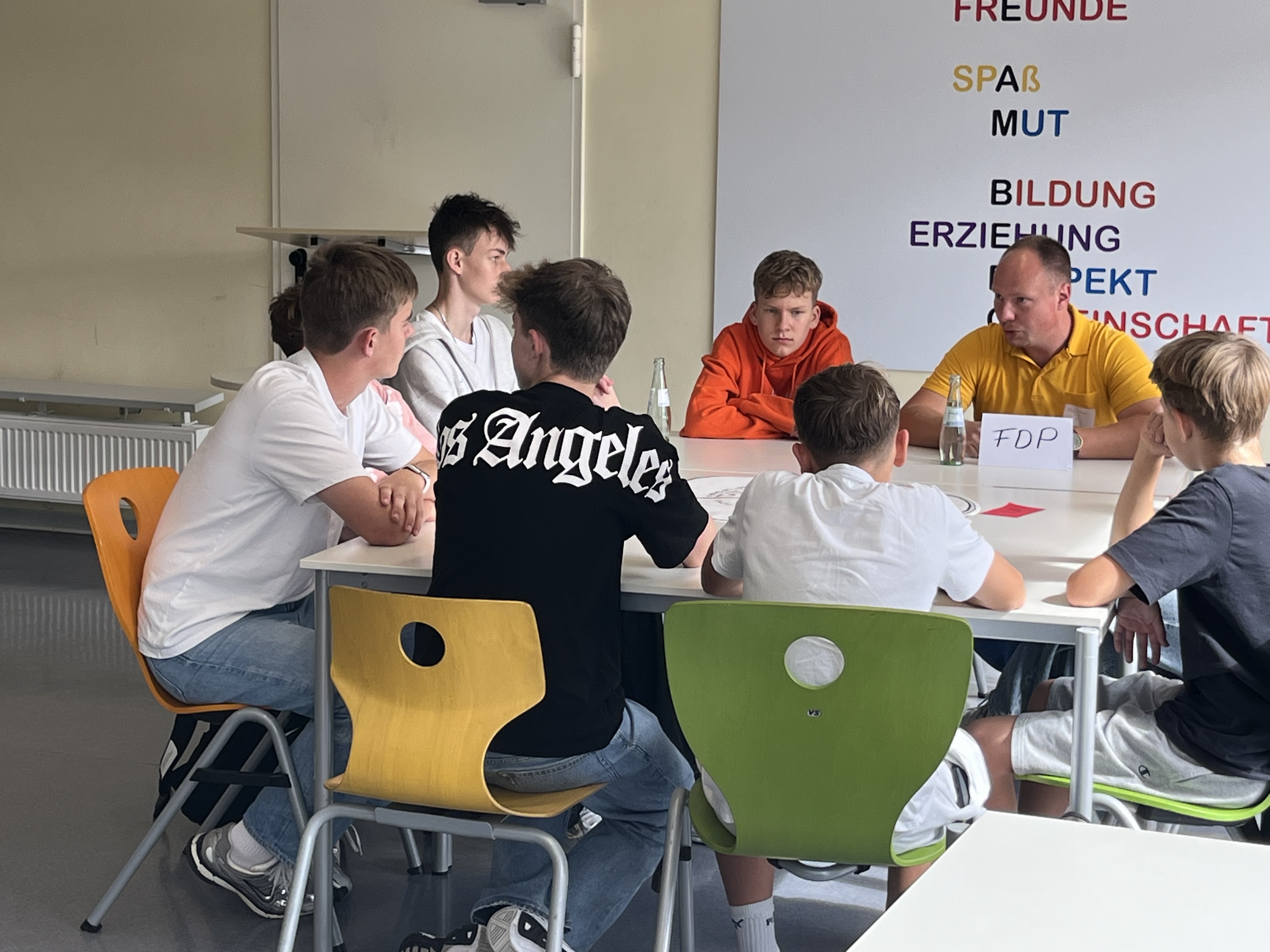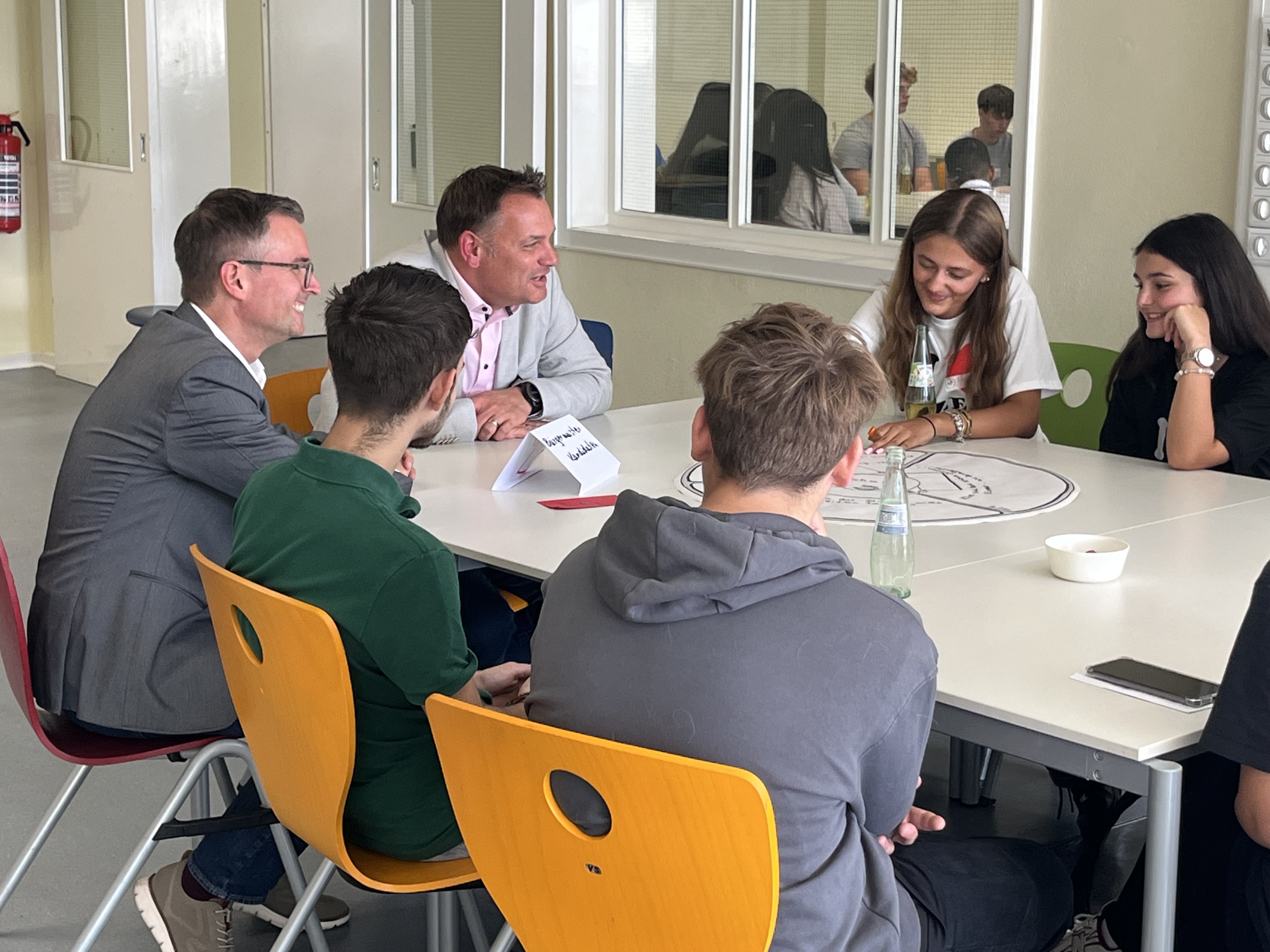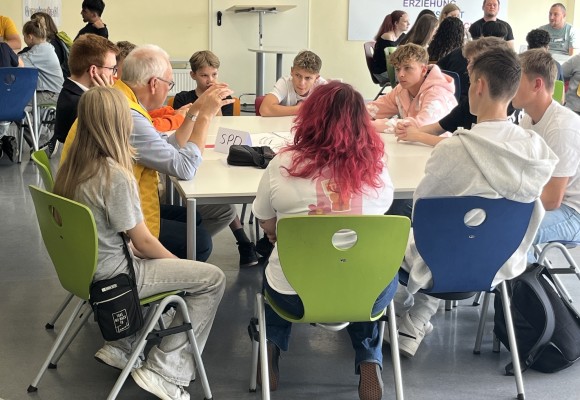 Nach einer Einführung zum Thema Kommunalwahlen rotierten an sechs Tischgruppen sowohl die Schüler:innen als auch die Politiker:innen, so dass möglichst viele Teilnehmer:innen zu den sechs Themenbereichen diskutieren konnten.