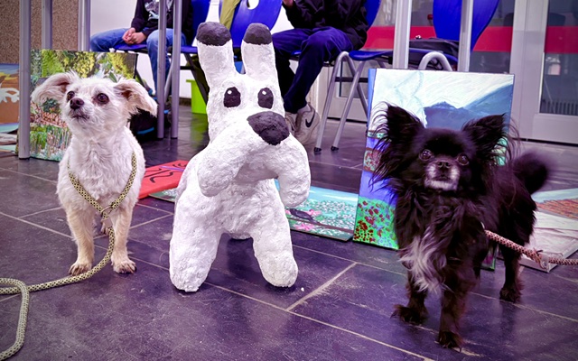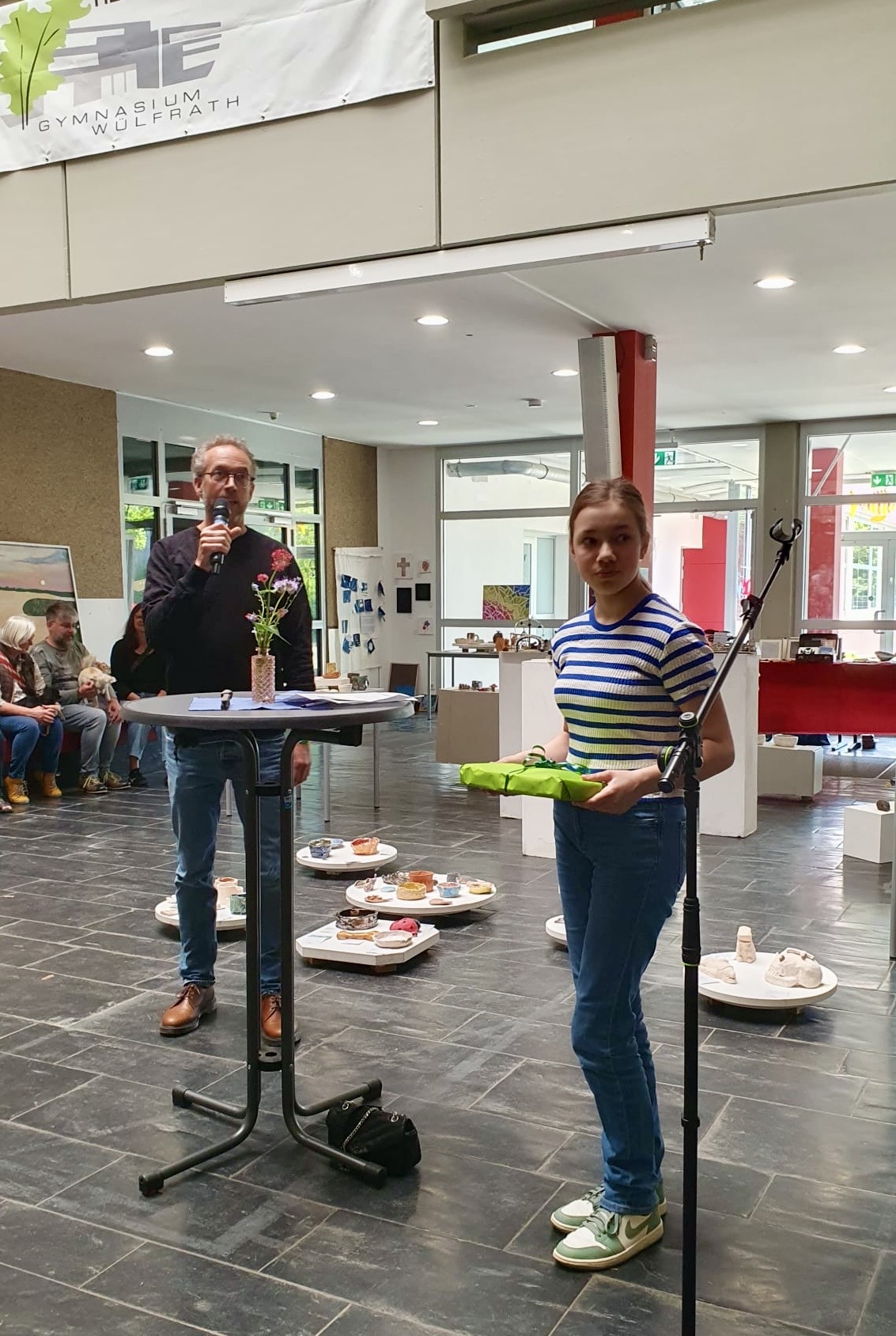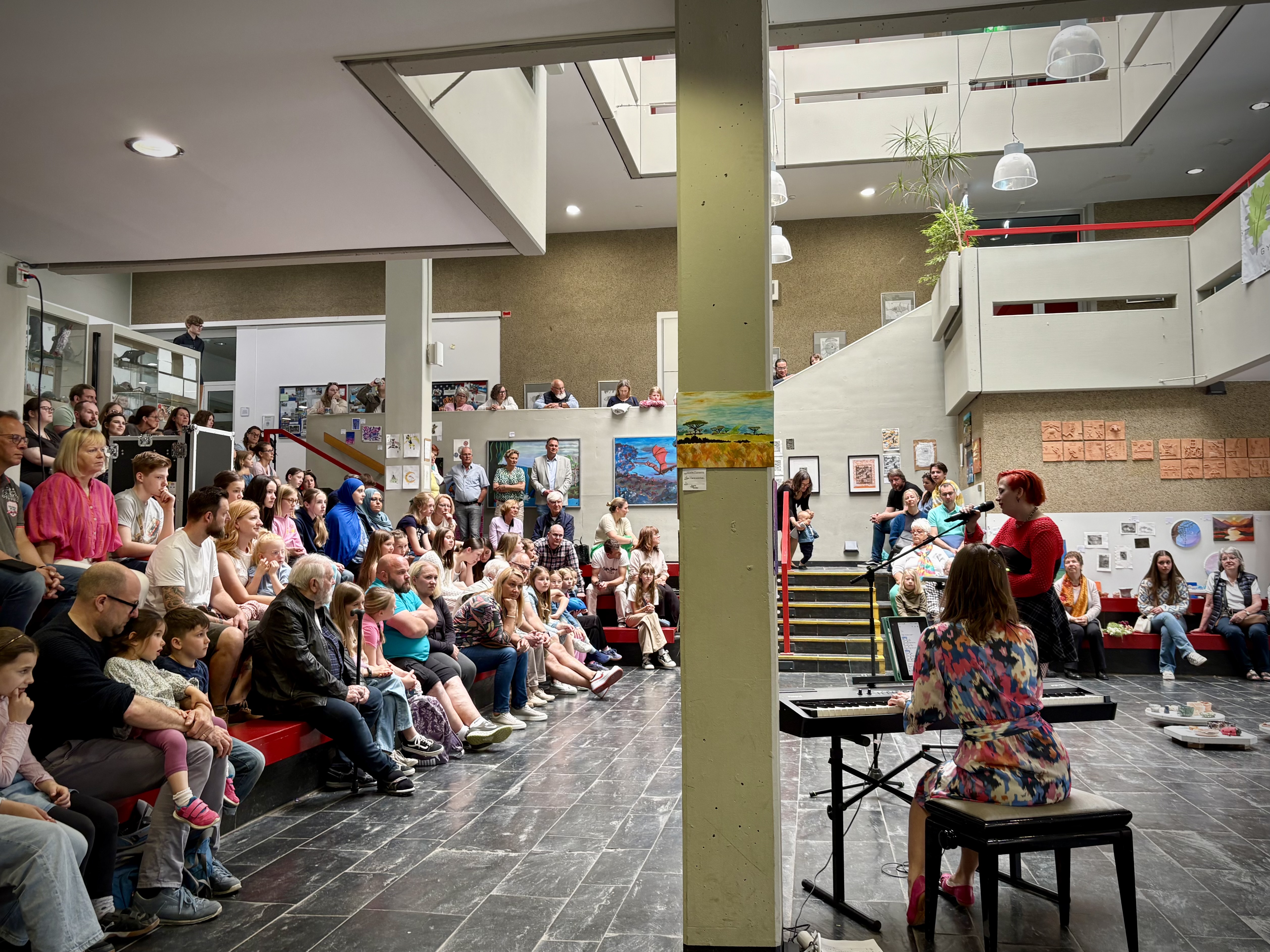 Eponine Semmler hat zur Eröffnung zwei Stücke gesungen und Shahed Salahad hat die Vernissage moderiert.