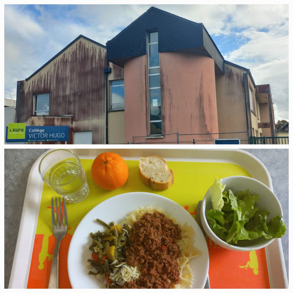 Das Collège verfügt über einen Kantinenbereich, wo die meisten Kinder mittags essen. Nur wenige gehen in der Mittagspause zum Essen nach Hause. Auch wir durften gemeinsam mit unseren corres typische französische Gerichte genießen. Als Vorspeise gab es Salat, als Hauptgericht Nudeln Bolognese und als Nachtisch Obst. Die Lehrerinnen und Lehrer essen gemeinsam in einem separaten Raum. In der Schule haben sie einen Aufenthaltsraum für Pausen (salle des professeurs). Normalerweise haben alle Lehrer/innen einen eigenen Raum, in dem sie nur ein Fach unterrichten.