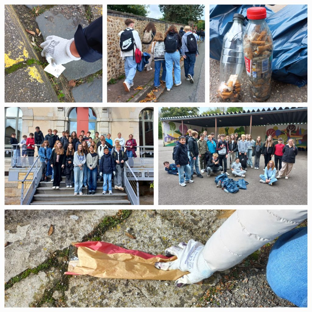 Nach dem Unterricht sind wir alle zusammen durch Rugles gelaufen und haben Müll gesammelt, während wir uns die Stadt angesehen haben.