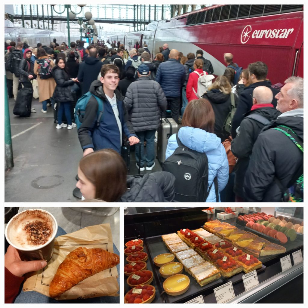 Danach ging es zum Gare du Nord, wo es unerwartet spannend wurde. Einige von uns beobachteten eine Frau, die uns verdächtig erschien und vermutlich eine Taschendiebin war. Einige Schülerinnen und Schüler schlüpften in die Rolle von Detektiven und observierten sie aufmerksam. Leider verlief die Rückfahrt mit dem Eurostar wieder nicht problemlos. Aufgrund eines ausgefallenen Zugs war unser Zug überfüllt, und es gab Probleme mit den Sitzplatzreservierungen, weil viele Plätze doppelt reserviert worden waren. Zu allem Überfluss saß auch die verdächtige Frau in unserem Zug, was unsere Aufmerksamkeit immer wieder auf unser Gepäck lenkte. Dennoch meisterten wir die Situation und kamen mit nur 25 Minuten Verspätung in Köln an.